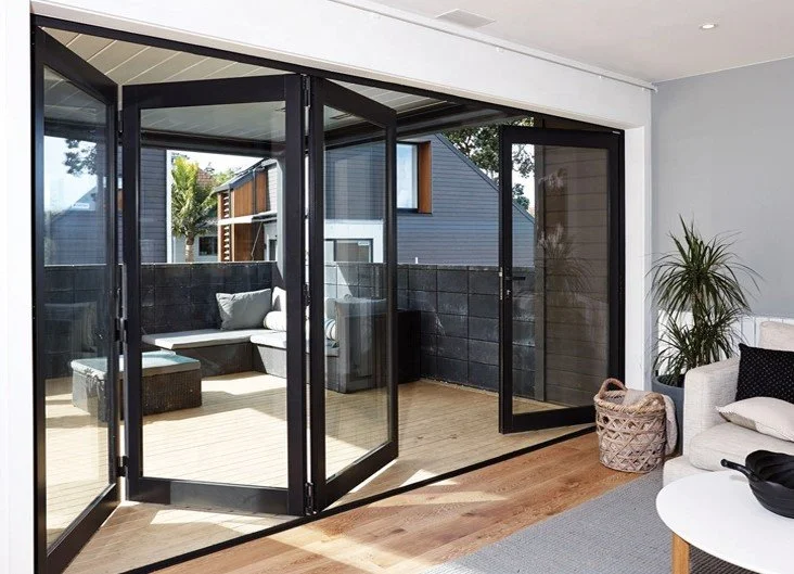Our folding door systems are made from premium aluminum construction while offering high quality at competitive costs. With the large glass panels and expansive openings, these doors are sure to add beauty and value to any home.